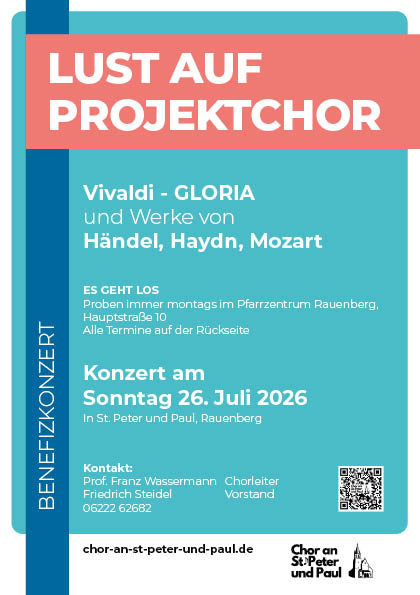 Es ist noch nicht zu spät, wir stehen noch am Anfang der Proben, unser Chor ist für alle offen, mit oder ohne Chorerfahrung. Fühlen Sie sich eingeladen, montags ab 19:30 Uhr mit uns im Pfarrzentrum zu proben und anschließend den Abend in gemeinsamer Runde ausklingen zu lassen.